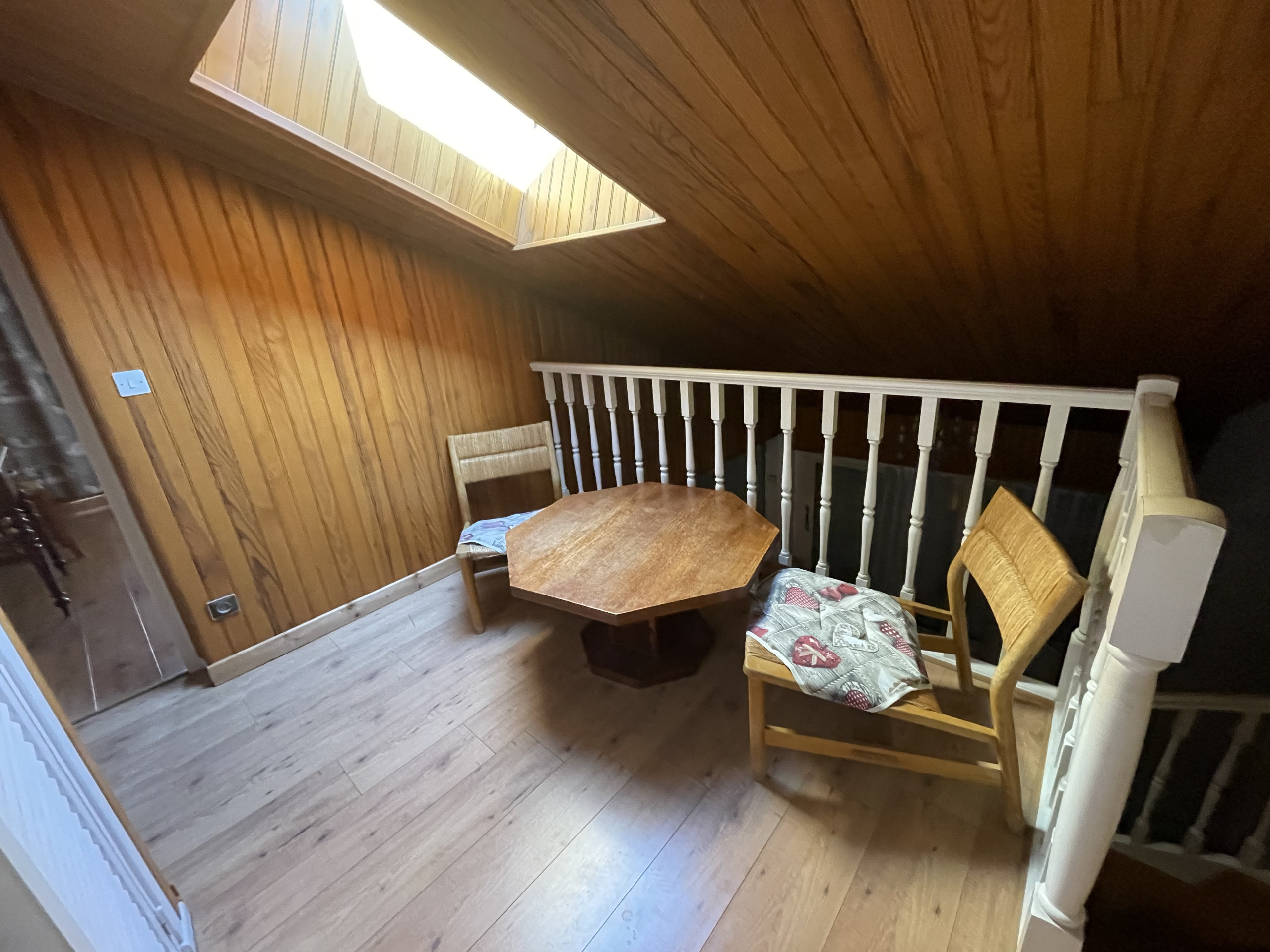 MEZZANINE: 6 m2 with view of the living room, storage cupboards, skylight,