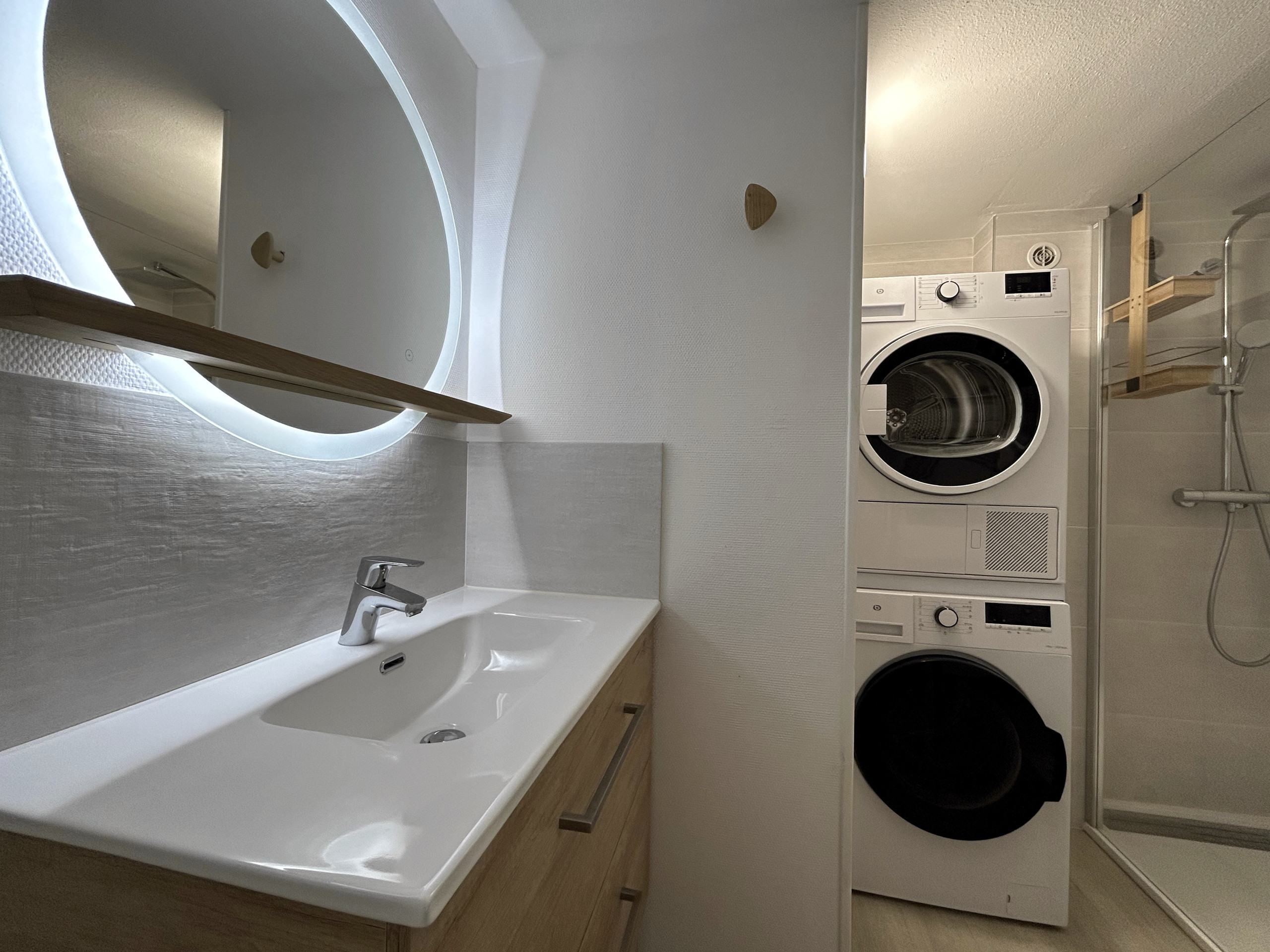 SHOWER ROOM: Italian shower, washbasin, washing machine, tumble dryer, hairdryer, iron, separate WC.