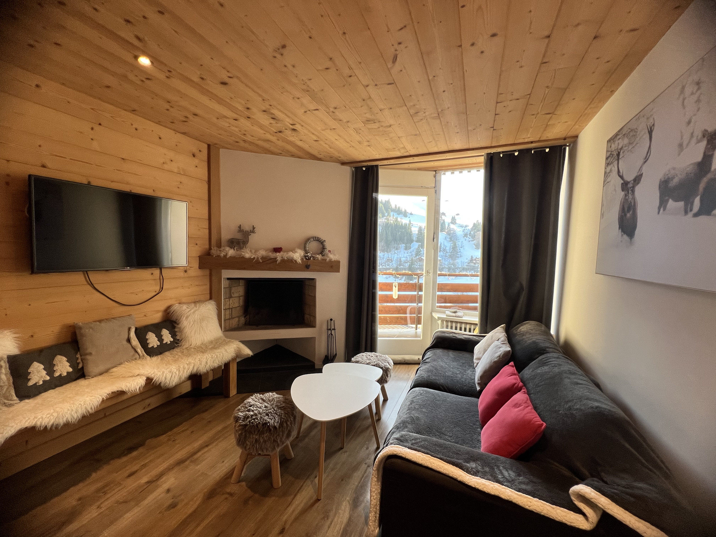 The apartment is charming, is fully-equiped, and is 51 m². The property is located at the foot of the ski slope. It has views of the mountain and the slopes.